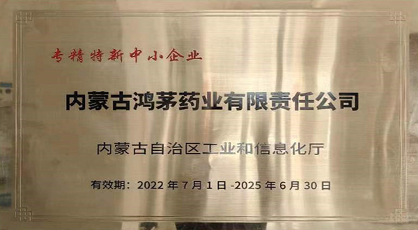 近期,內(nèi)蒙古鴻茅藥業(yè)有限責(zé)任公司成功通過嚴(yán)格的申報(bào)與評審,榮獲由內(nèi)蒙古自治區(qū)工業(yè)和信息化廳頒發(fā)的自治區(qū)級“專精特新中小企業(yè)”稱號。